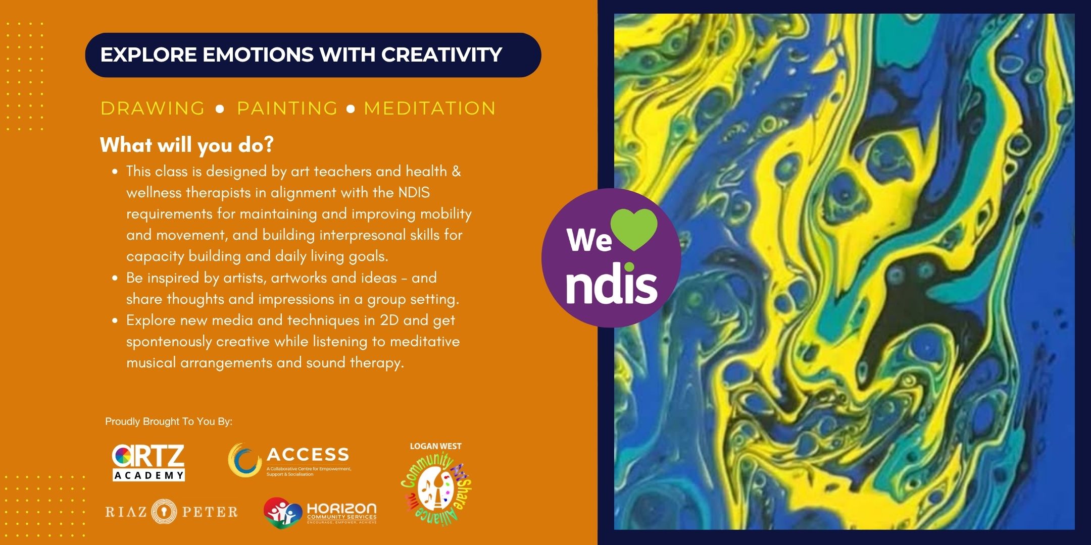 This Art Therapy class is designed by art teachers and health & wellness therapists in alignment with the NDIS requirements for