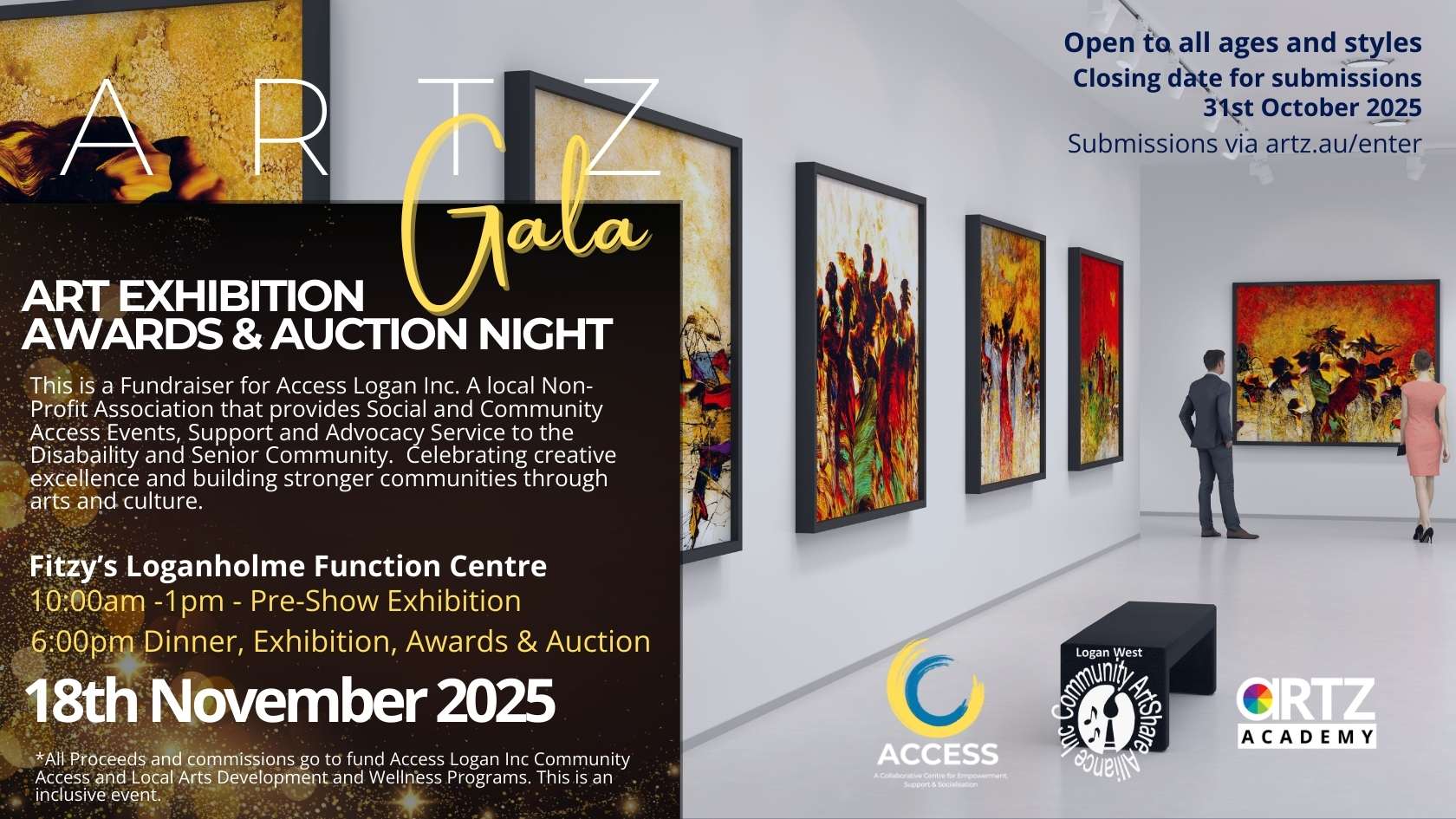 Join us for the Artz Gala Awards 2025, an inspiring evening that celebrates the creativity and talent within Logan’s vibrant arts community. Hosted by Access Logan Inc. and Artz Academy, the Gala will showcase local artists of all ages, featuring painting, sculpture, mixed media, and more.